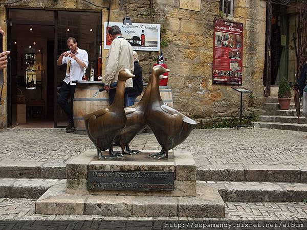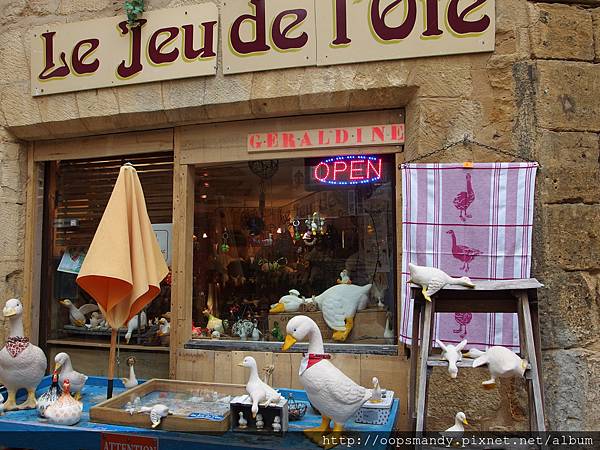街上有不少賣鵝肝醬和黑松露的店,黑松露又被稱為食品界的黑鑽石,這裡是公認最佳產區,松露都生長在地下,氣味與公豬的賀爾蒙相似,因此最適合用來挖掘松露的就是母豬了,不過母豬挖掘的時候常常破壞松露的菌絲,因此松露獵人改訓練狗來幫忙^^~