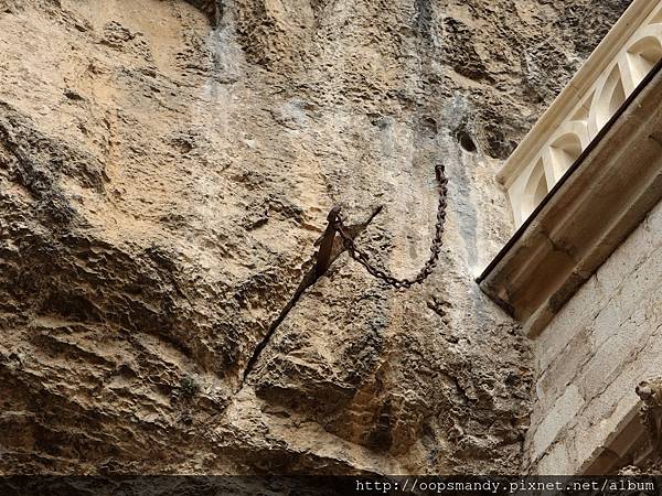先別急著進去教堂裡,門上的峭壁中插著一把「羅蘭之劍」,羅蘭效忠於查理曼大帝,天使將劍給查理曼大帝,大帝再賜給羅蘭。羅蘭遠征西班牙時,遭到伊斯蘭教徒的突襲,全軍覆沒,為了不讓神劍落入敵人手中,羅蘭就把劍刺向大理石,因此就卡在石頭裡沒人拿得出來了。