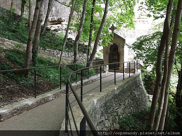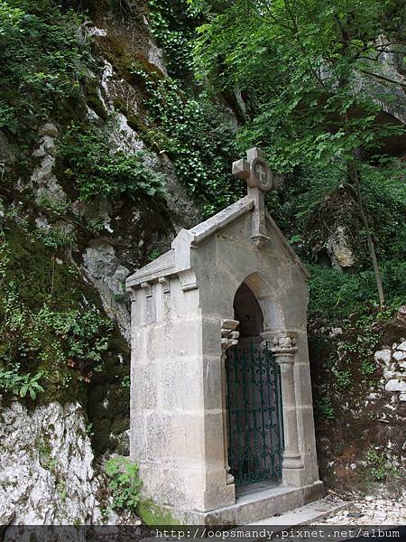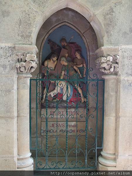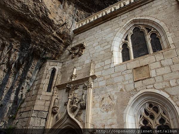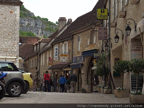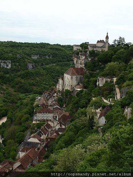 第六天來到朝聖古城:霍卡曼都 Rocamadour,位在峽谷的峭壁上,是天主教的聖地,已有一千多年的歷史。「Roc」在法文裡是石頭的意思,「amadour」是愛好者,因此合起來就等於「喜歡石頭的人」。又有人說,耶穌揹著十字架,即將前往受死之前經過的「苦行十四站」,也就是耶穌受審,被釘上十字架到復活的過程,當中一位名叫Veronica的婦女,因為不忍心耶穌血流滿面,因此撕下自己的衣角,替耶穌擦臉,這塊布也因此印出耶穌臉部的輪廓,她的先生就是Amadour,因此這對夫婦同時被封為聖人和聖女,後人於12世紀時在此發現聖人的遺骨,地名也就是這樣來的~